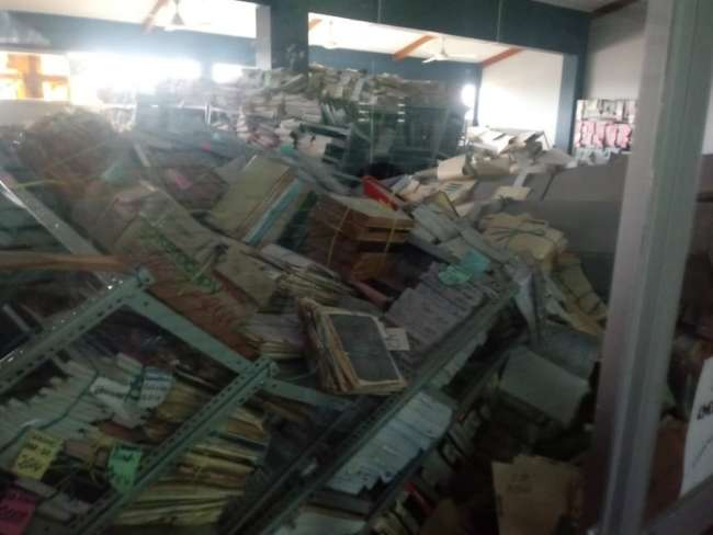 Ambientes fueron sacudidos por sismo del domingo pasado, trayendose abajo documentos que se encontraban en los estantes