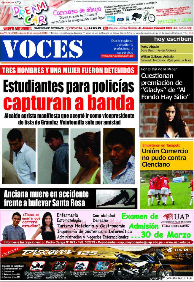Un grupo de alumnos de la Escuela Técnica Superior de la Policía Nacional del Perú, que pasaba circunstancialmente por el bulevar Shilcayo, intervino a cuatro