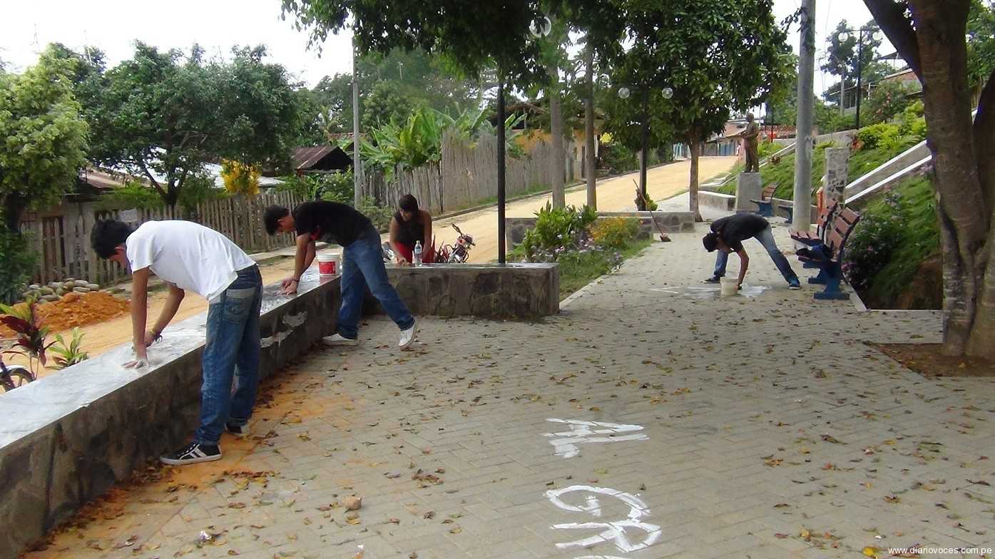 Pandilleros que simpatizan por la barra brava de club deportivo Alianza Lima, pintarrajearon un parque del barrio Calvario de Lamas, causando malestar a los vecinos