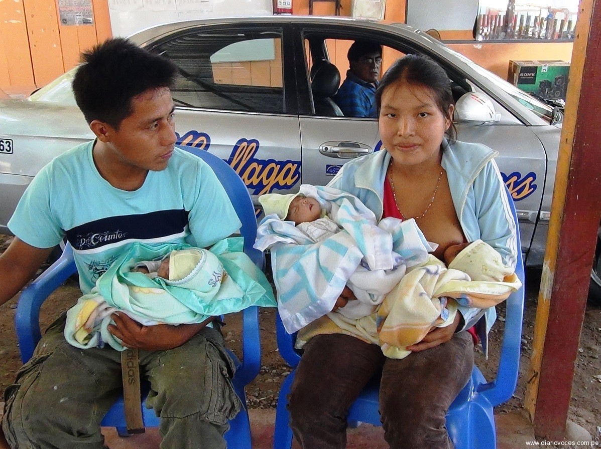 Procedentes de la comunidad nativa de Chambira de la provincia de Picota, llegó a Tarapoto una joven pareja de esposos padres de trillizos que necesitan