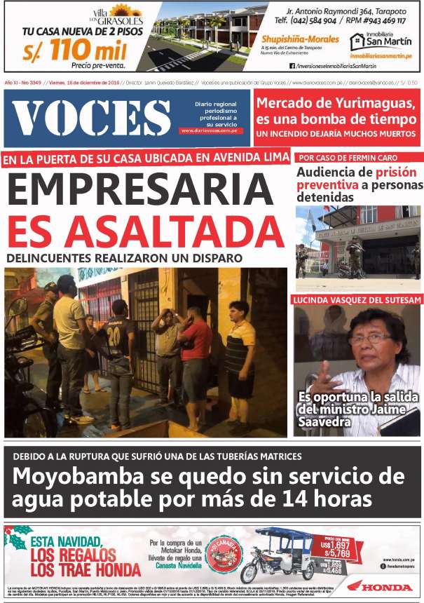 EN TARAPOTO La noche del miércoles se registró un asalto en una casa ubicada en la cuadra nueve del jirón Lima del barrio Comercio de