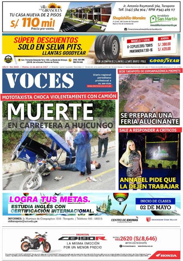 CERCA A JUANJUI Juanjui. Ayer por la mañana un mototaxista encontró trágica muerte, luego que el vehículo que conducía colisionara violentamente contra un volquete cargado