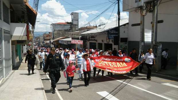 Profesores de varias provincia de la región San Martín continúan acatando la huelga indefinida decretado a nivel nacional, ayer por la mañana realizaron una marcha