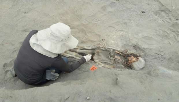 Un total de 56 esqueletos de niños sacrificados durante el periodo de la cultura Chimú (1100 – 1400 d. de Cristo) fueron encontrados en un