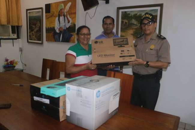 La Prof. Martha Luz Torres Del Águila, Alcaldesa del Distrito de la Banda de Shilcayo realizó la entrega de los equipos de computo a la