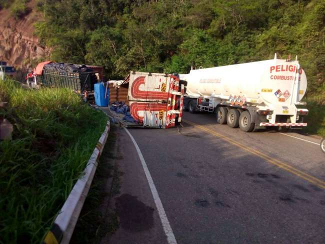 Un tráiler cargado con más de diez toneladas de arroz se volcó en el sector Abra Machungo, en la carretera Fernando Belaúnde Terry, el hecho