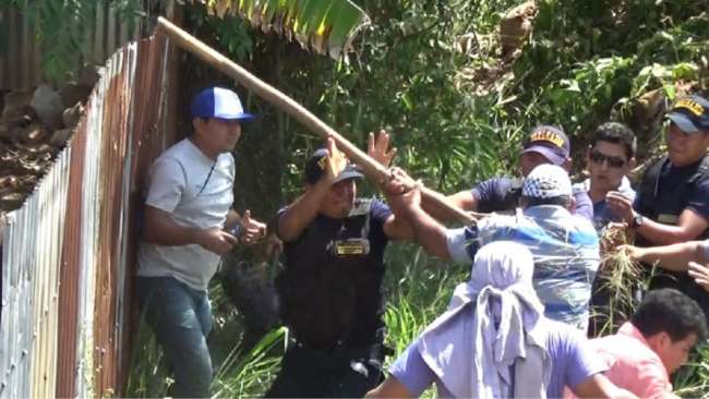 De manera violenta se enfrentaron ayer integrantes de una familia del distrito de Morales con personal municipal y vecinos del jirón Bolívar, por la disputa