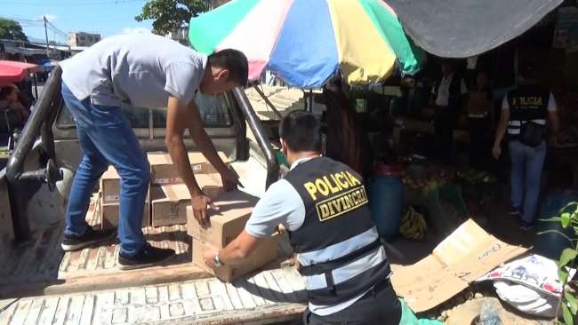Tarapoto. Más de mil latas de conserva de pescado fueron incautados ayer por la mañana durante un operativo conjunto entre la Fiscalía de Prevención del