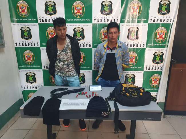 Durante una rápida intervención entre serenos y agentes policiales de la Comisaría de Tarapoto, intervinieron a dos jóvenes que portaban armas de fuego, municiones y