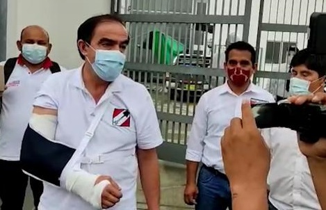El candidato presidencial de Acción Popular, Yonhy Lescano, resultó con una lesión en el brazo derecho luego de que su comitiva sufriera un accidente de