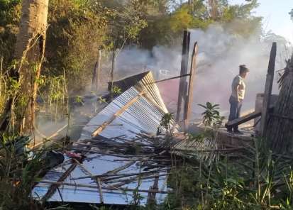En Moyobamba La casa rústica de una humilde familia se incendia en el sector Punta De Fachín, el siniestro fue considerado de moderada intensidad en una