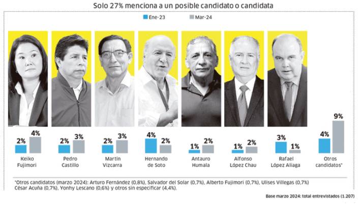 Perú, país sin líderes Casi tres cuartas partes de la población no tienen a quién respaldar para tentar el Gobierno. Un 44% desconoce quién podría