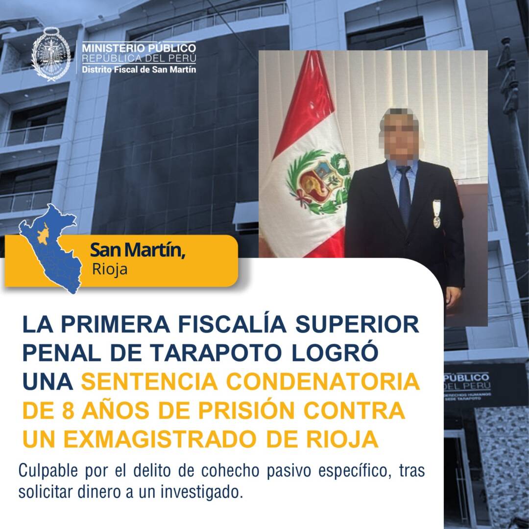 Culpable por el delito de cohecho pasivo especifico, tras solicitar dinero a un investigado. La Primera Fiscalía Superior Penal de Tarapoto, a cargo fiscal superior