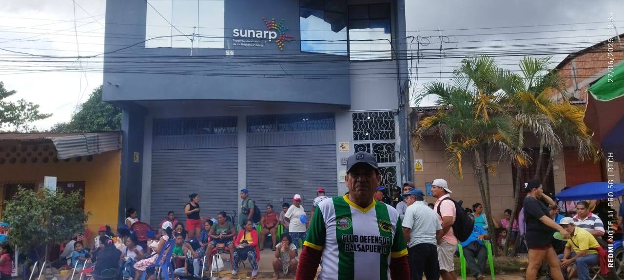 En Yurimaguas Moradores de cinco asentamientos humanos del exfundo Tujano realizaron un plantón frente a la oficina de los Registros Públicos de Yurimaguas, en protesta