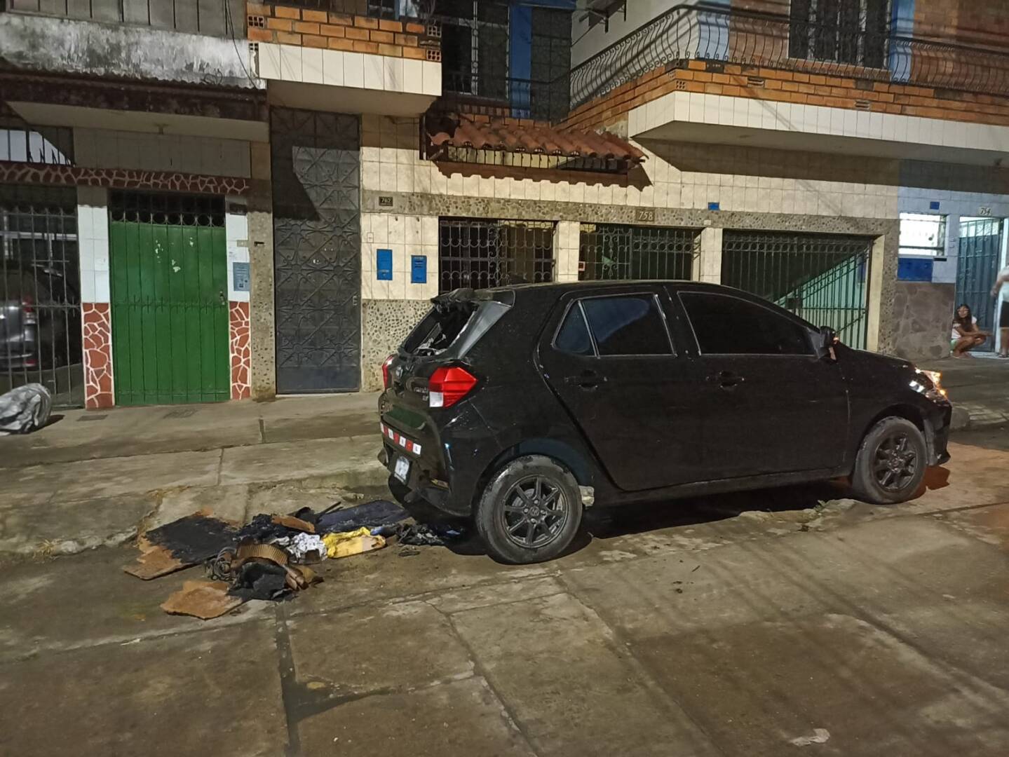 Un automóvil fue incendiado la noche del pasado martes en la cuadra 7 del jirón Ricardo Palma, en el barrio Huayco de Tarapoto, presuntamente como