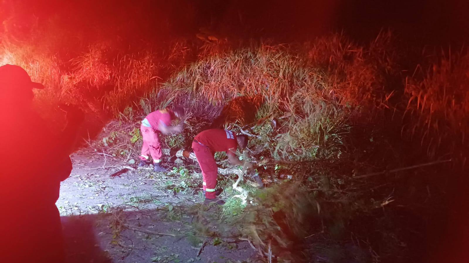 Ayer por la noche, un enorme árbol cayó sobre la pista tras la intensa lluvia registrada en la carretera que une los distritos de El