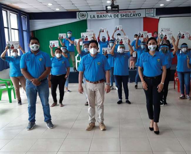 La gestión del Alcalde José Del Águila García, a través de la Gerencia de Desarrollo y Promoción Social realizó la entrega de indumentaria a los “actores sociales” que promueven la adecuada alimentación y la reducción de la anemia. La indumentaria consiste en polos, laminarios, elementos de protección personal con la finalidad de brindar a nuestros actores sociales mejores condiciones en el desarrollo de sus labores diarias.