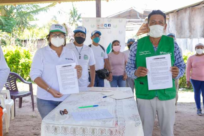 La Comisión Nacional para el Desarrollo y Vida sin Droga (Devida) y 432 familias firmaron actas de entendimiento a través de las cuales se comprometen a trabajar de forma conjunta para enfrentar y reducir los daños que generan las plagas en los cultivos de cacao en los distritos Pólvora y Campanilla, región San Martín.
