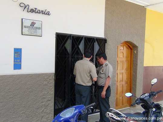 En la notaria de la doctora María García Benzaquen, se produjo un hecho delictivo de manera extraña, inicialmente denunciaron que se produjo un asalto, pero cuando la policía llegó al local, no encontraron signos de violencia en la puerta y en el personal de servicio manifestaron que los ataron de manos.