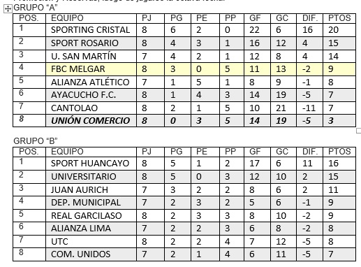 Mientras que a paso firme. La gente de Sporting Cristal y Sport Huancayo lideran sus grupos en el Torneo de Promoción y Reservas, luego de jugarse la octava fecha.
