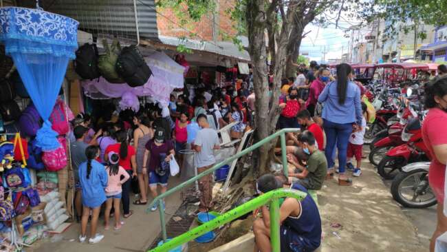 Texto de Imagen: FORMAN LARGA COLA PARA COMPRAR UNIFORME ESCOLAR