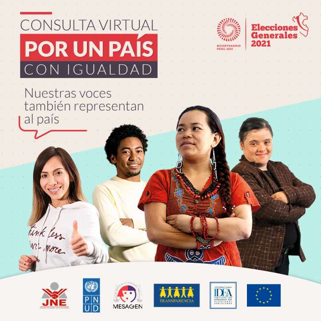 El Jurado Nacional de Elecciones (JNE) aplicará entre hoy y el domingo 21 de febrero una encuesta virtual para recoger las necesidades y demandas de mujeres, personas con discapacidad y comunidad LGTB, así como de pueblos afroperuanos e indígenas, a fin de construir la “Agenda por la igualdad” en el contexto de las Elecciones Generales 2021.