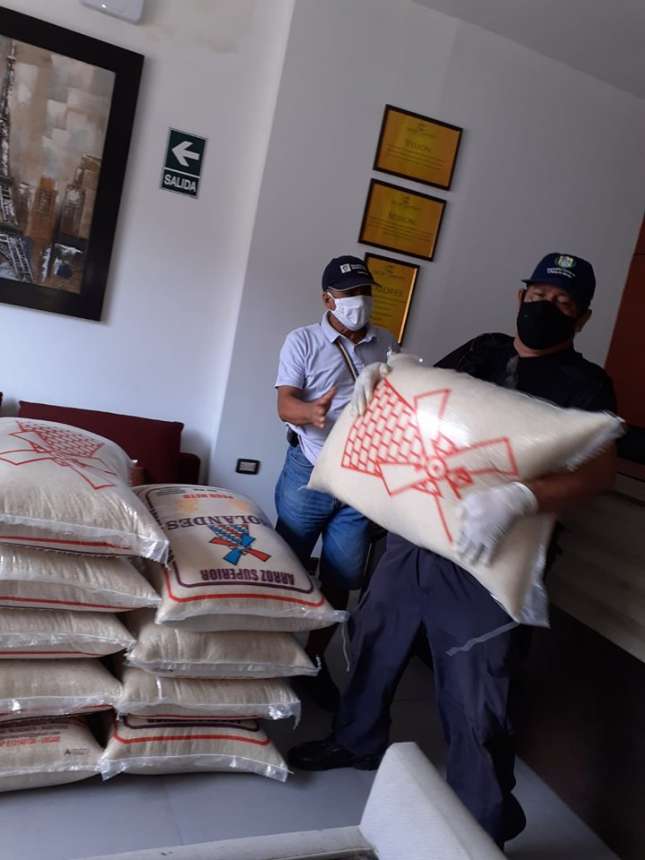 A pesar que él se encuentra en el distrito de Sauce con su familia y cumpliendo con el aislamiento social obligatorio, esta situación por la atravesamos todos los peruanos, no fue impedimento para lograr el objetivo que se trazó, es decir apelando a la buena voluntad de empresarios amigos logró reunir esa cantidad de arroz en sacos alcanzando las 2 toneladas de este cereal infaltable en la mesa familiar.