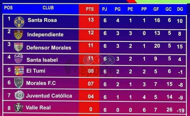 Cuarto partido: 04:00 Defensor Morales vs. Independiente (tabla de colocaciones fuente: deporte al día)