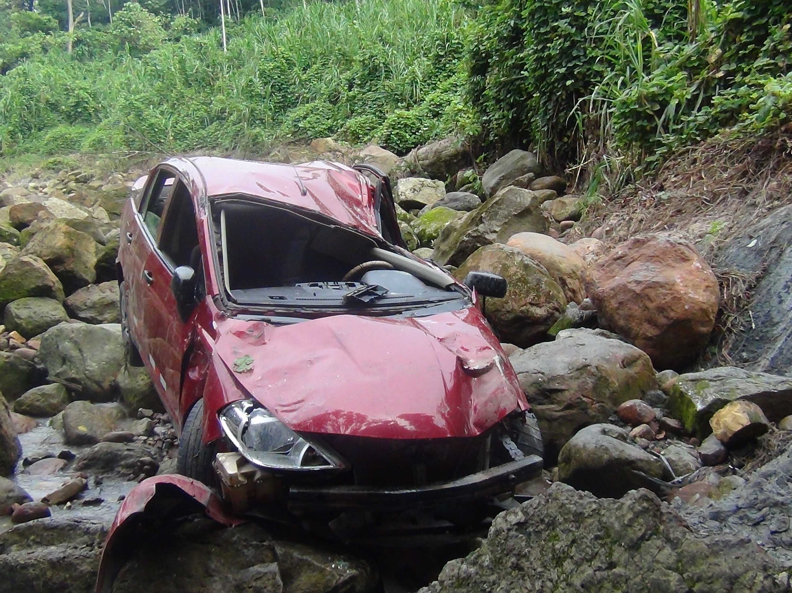 El hecho ocurrió al promediar las 6 y 30 de la mañana de ayer jueves, donde los pobladores al escuchar un fuerte sonido, salieron de su vivienda para ver que pasó y quedaron sorprendidos al ver el auto entre las piedras.