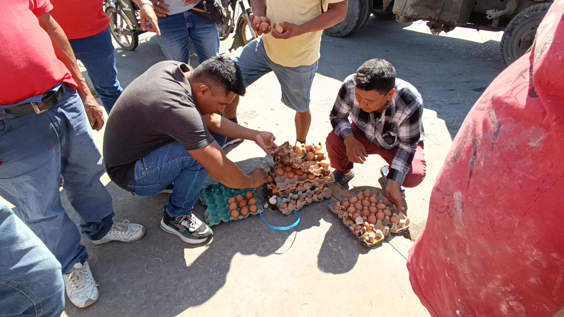 El impacto entre los vehículos provocó la caída de la carga del trimóvil, dispersando huevos, arroz, verduras y pollos eviscerados por la calzada. Un grupo de mototaxistas y transeúntes se llevaron los huevos, muchos de los cuales se rompieron por el fuerte choque. A pesar de las malas condiciones de los productos, la gente los recogió y se los llevó.