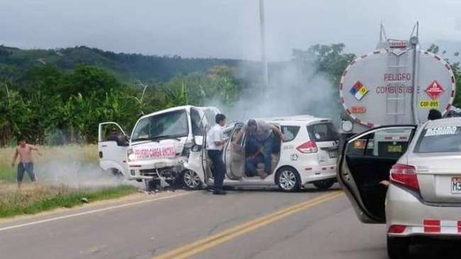 Ayer por la mañana se registró un triple choque en la carretera Fernando Belaúnde Terry, cerca del distrito de Cacatachi, dejando como saldo cinco personas heridas, las víctimas se dirigían a Moyobamba en un vehículo de servicio público que colisionó con un camión cisterna, las víctimas fueron auxiliadas por transeúntes y choferes que pasaban por la zona.
