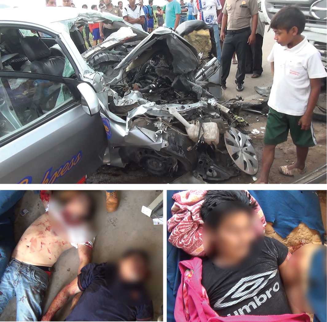 Ayer por la mañana se registró un trágico accidente de tránsito que dejó como saldo tres muertos y dos heridos en la carretera Fernando Belaúnde Terry, a un kilómetro de Picota. Vecinos de la zona manifestaron a la Policía Nacional que el exceso de velocidad fue la causa de siniestro y responsabilizaron a ambos conductores.