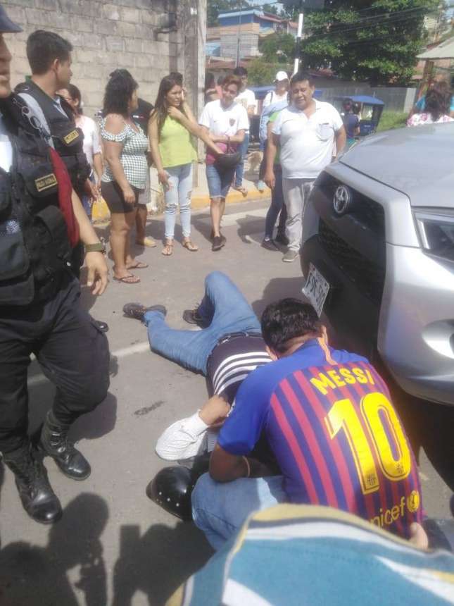 Tarapoto. Mientras se desarrollaba el simulacro nacional de sismo, se produjo un accidente de tránsito en la urbanización Bernabé Guridi de Tarapoto, donde un suboficial de la Policía Nacional del Perú resultó herido. La motocicleta de la víctima terminó debajo de la camioneta conducida por el empresario Erick Roca Varela.