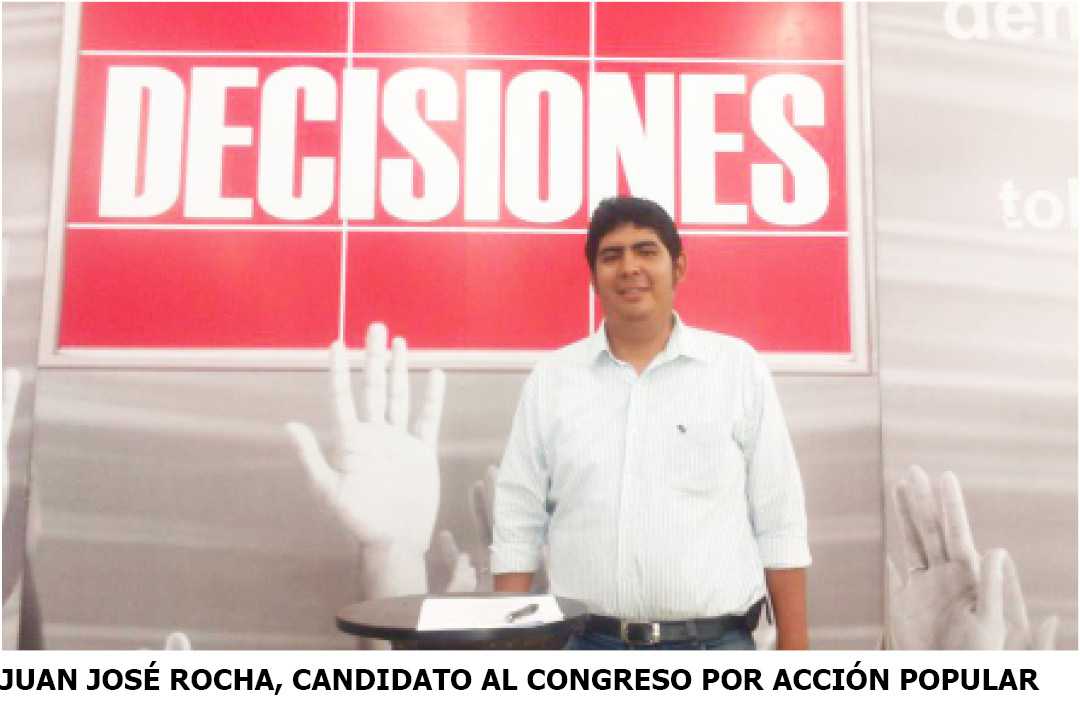 Juan José Rocha tiene 26 años, es bachiller en Agronomía, está realizando una maestría en gestión pública, ha sido dirigente universitario, miembro del Consejo Universitario, también fue regidor provincial cubriendo una vacancia y como militante de Acción Popular ha tenido cargos dirigenciales.