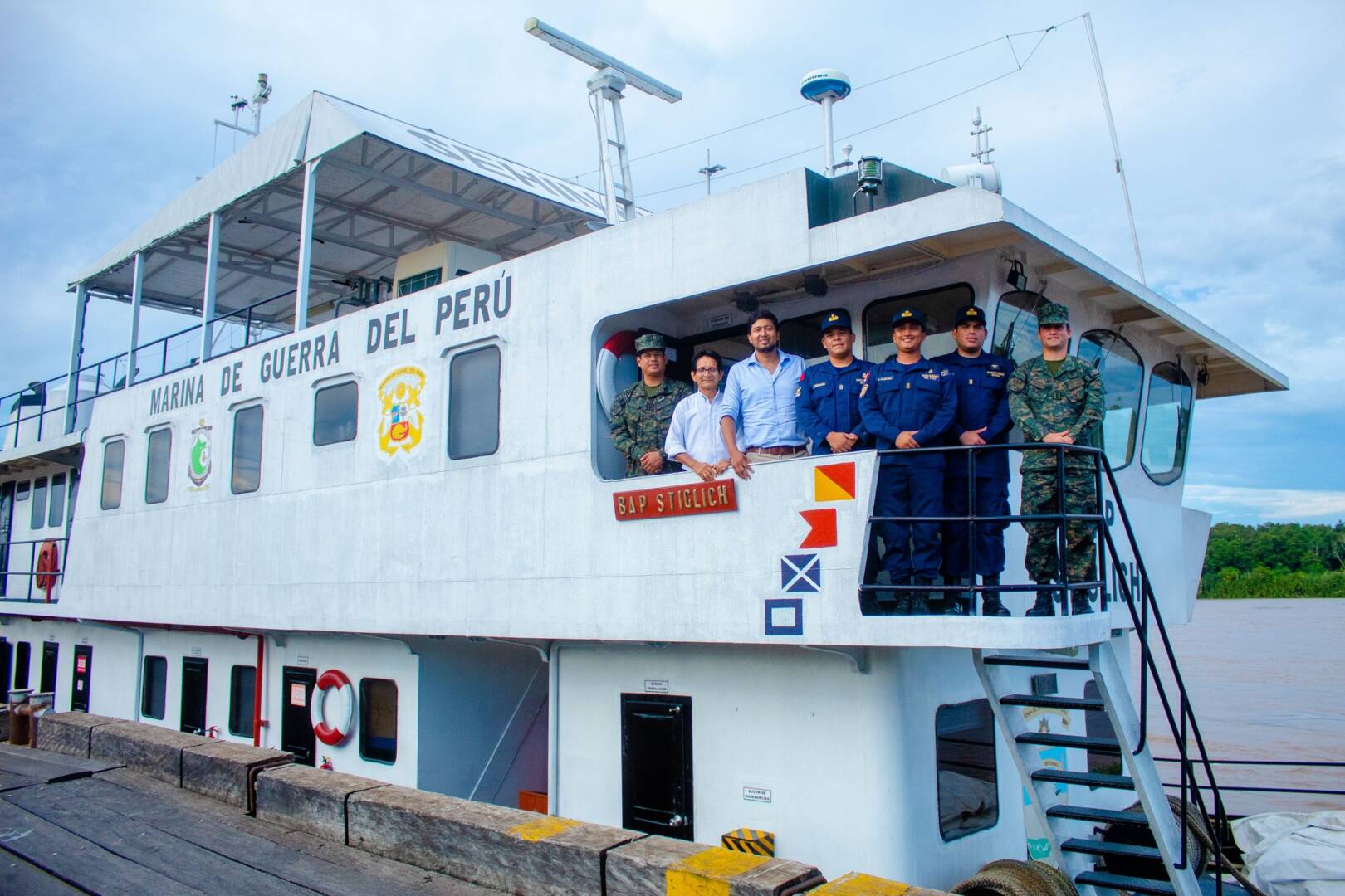 El Buque Armada Peruana (B.A.P. STIGLICH) de la Marina de Guerra del Perú, se encuentra en Yurimaguas acoderado en el puerto de ENAPU, realizando trabajos técnicos relacionados a la hidrografía en el espacio amazónico.