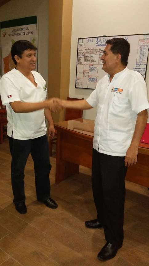 Yurimaguas. Producto de varias reuniones de trabajo entre el equipo de gestión de la Dirección Red de Salud Alto Amazonas, y del hospital Santa Gema, los directores ejecutivos de ambas instituciones, Dr. Guillermo Angulo Arévalo y Dr. Armando Sánchez Tuanama, sellaron ayer importantes acuerdos para trabajar de manera articulada a favor de la salud preventiva – promocional, asistencial y recuperativa de la población.