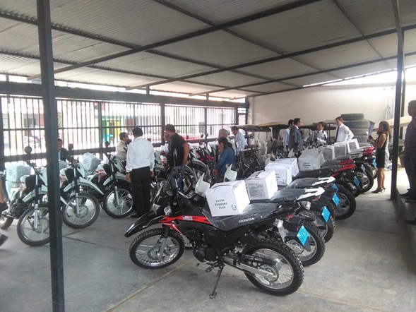 Moyobamba. Por disposición de la Fiscalía de la Nación, el Ministerio Público adquirió 20 motocicletas que serán repartidas en las fiscalías de San Martín, la ceremonia de entrega se llevó a cabo la mañana de ayer miércoles y estuvo a cargo del Dr. Juan Domingo León Estrella, fiscal superior titular encargado de la Presidencia de la Junta de Fiscales Superiores del Distrito Fiscal de San Martín y Fredy Seminario Arévalo gerente de administración.
