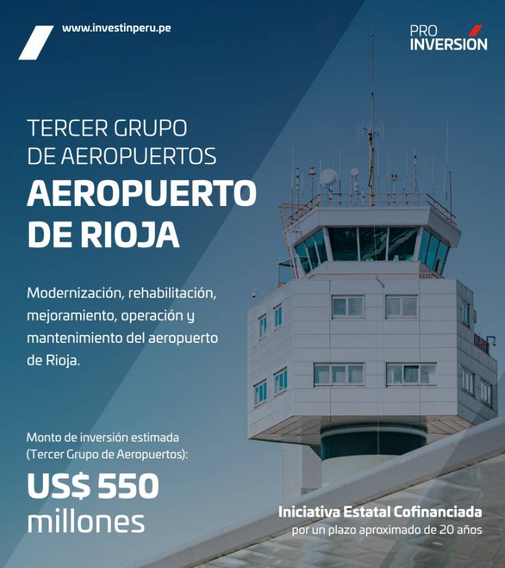 El Aeropuerto de Rioja ha sido incorporado en el Tercer Grupo de Aeropuertos dentro del plan de modernización y desarrollo de la infraestructura aeroportuaria del país. Este ambicioso proyecto tiene como objetivo incrementar la conectividad aérea, mejorando la infraestructura y operación de varios aeropuertos clave en el territorio nacional.