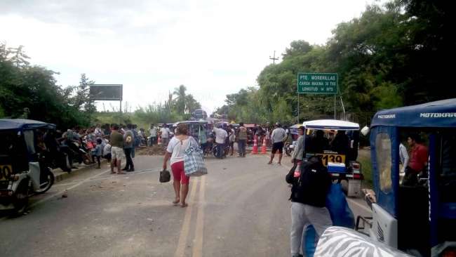 Texto de Imagen: Bloqueo en carretera Fernando Belaúnde Terry