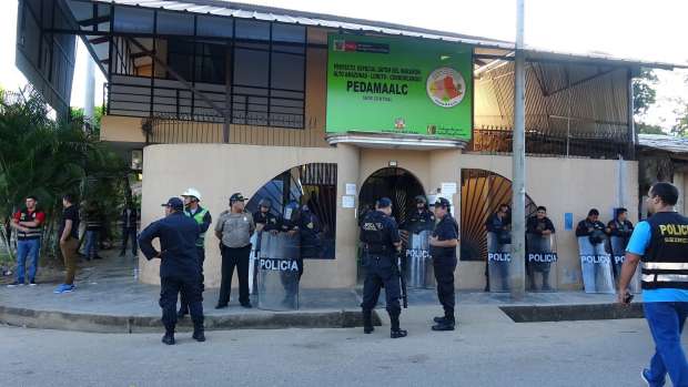 Ayer agentes de la Policía Nacional con la participación de un representante del Ministerio Público, desalojaron a las personas en un número reducido que se encontraban posesionadas desde el lunes 02 de julio en los exteriores de la sede central del PEDAMAALC, exigiendo que continúe en el cargo Liz Carol Hidalgo Ruiz.