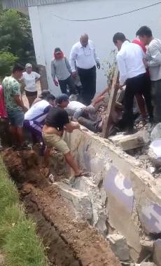 Estaba trabajando en la zanja cuatro trabajadores, de los cuales dos fueron aplastados por el muro, ellos tenían fracturas de consideración, pero se le veía conscientes y estable, en cambio uno de ellos que fue aplastado completamente, todo el cuerpo, incluso golpe en la cabeza, en el pecho, su estado es delicado.