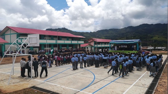 Roque. Contando con la presencia del director de la Unidad de Gestión Educativa Local Moyobamba Lic. Elías Ocampo Vela y otras autoridades, el alcalde del distrito de Alonso de Alvarado Roque en Lamas, Elvar Gonzales Ramos, inauguró la moderna infraestructura de la Institución Educativa 00481 ubicada en la localidad de Pinshapampa. La obra tuvo una inversión superior a los 6 millones de soles y favorece a más de 800 estudiantes de los niveles de primaria y secundaria.