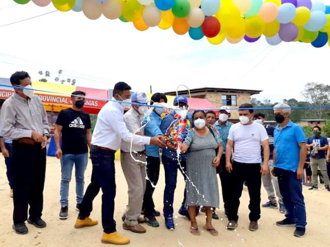 El alcalde de la municipalidad provincial de Lamas Ing. Onésimo Huamán Daza hizo entrega de 12 kilómetros de carretera rehabilitados a pobladores de la zona norte del distrito de Pinto Recodo.