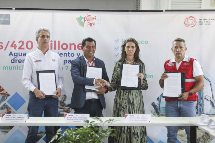 Cabe mencionar que se ha destinado, desde el gobierno central, 420 millones de soles para obras de agua, saneamiento, drenajes pluviales en 20 municipalidades de 7 regiones del país.