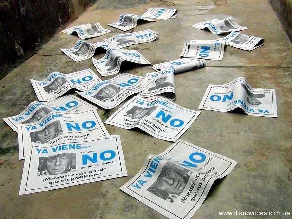 Sin embargo con estos volantes encontrados ayer en diferentes calles moralinas, considera que sus detractores estarían buscando que las autoridades electorales se pronuncien al respecto, para desprestigiarlo ante la población moralina. (Hugo Anteparra)
