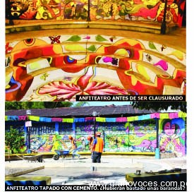Tan solo hace algunos meses, artistas que llegaron desde la Escuela de Bellas Artes de la ciudad de Iquitos, pintaron con motivos amazónicos este anfiteatro con el apoyo de la Dirección de Cultura, la propia municipalidad a través de sus regidores y el gobierno regional, y pese a ello, se tomó la decisión, según explicación de la municipalidad, a pedido de los dirigentes y vecinos del barrio de Zaragoza, debido a algunos accidentes que se habrían producido hace algún tiempo.