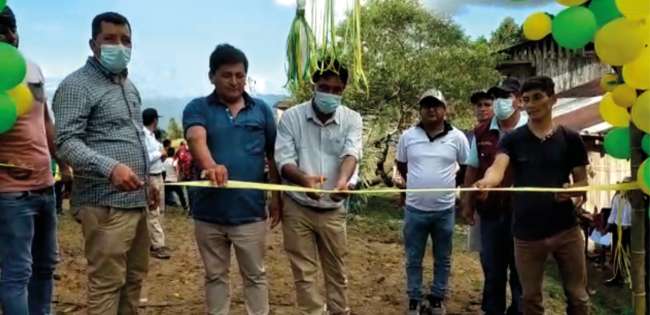 Alcalde del distrito de Alonso de Alvarado Roque Antolin Guerrero Cordova, inauguró 4 kilometros de trocha carrozable del sector Los Angeles compresión del caserío Alto Lahuarpia distrito de Alonso de Alvarado Roque provincia de Lamas, Trabajo desarrollado de manera conjunta entre la comuna distrital de Roque y la población del sector Los Angeles.