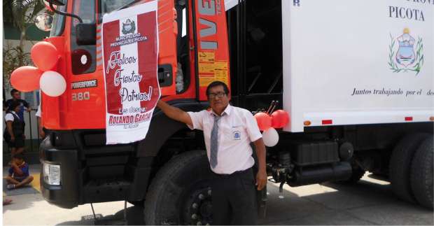 El alcalde de la municipalidad provincial de Picota, Rolando García Mori, presentó a la población en el marco de las fiestas patrias, la reciente adquisición de un camión compactador de 18 cubos adquirido con un préstamo al Banco de La Nación, el mismo que será utilizado en el servicio de baja policía, que hasta hace poco el servicio lo hacía un volquete de 12 cubos.