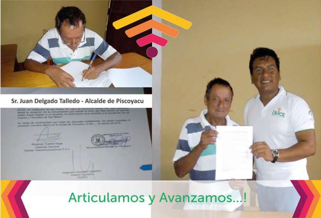 Por ello se firmó el convenio marco de cooperación interinstitucional entre la Municipalidad Distrital de Piscoyacu, representado por su alcalde Juan Delgado Talledo, Alianza CR3CE – CEDRO y YACHAY Telecomunicaciones S.A.C. para fortalecer acciones de ejecución para brindar acceso a la conectividad y servicios financieros, que permitirá dinamizar la economía local en las comunidades rurales, esto contribuye a más oportunidades de desarrollo social y económico en la Provincia del Huallaga – Saposoa.