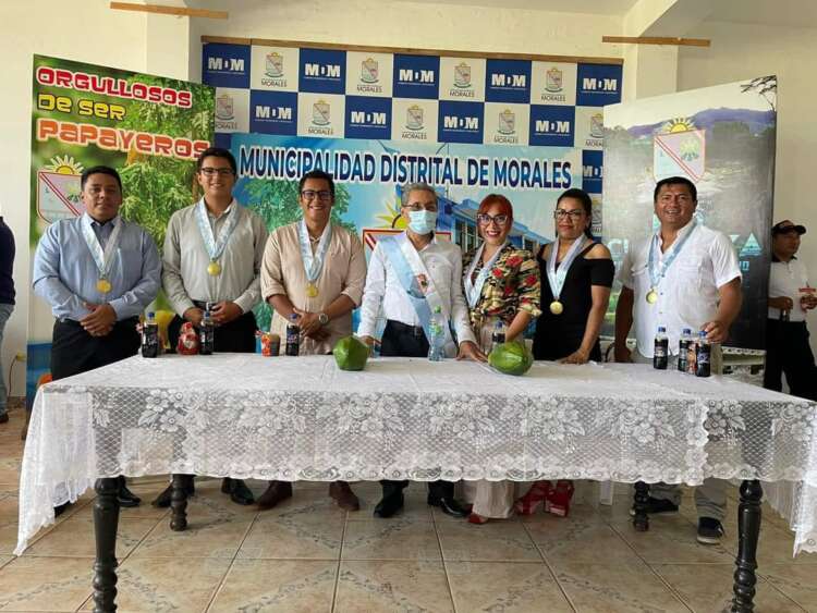 Un hecho que no pasó desapercibido, es que el alcalde de Morales ingresó a su despacho con papaya en mano, acompañado de sus regidores, siendo recibido por los trabajadores municipales.